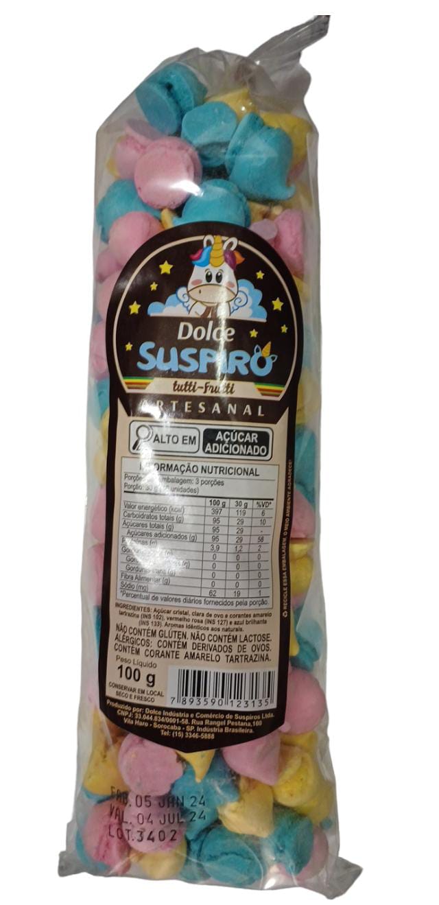 Suspiro artesanal mini 100g Tutti-frutti colorido
